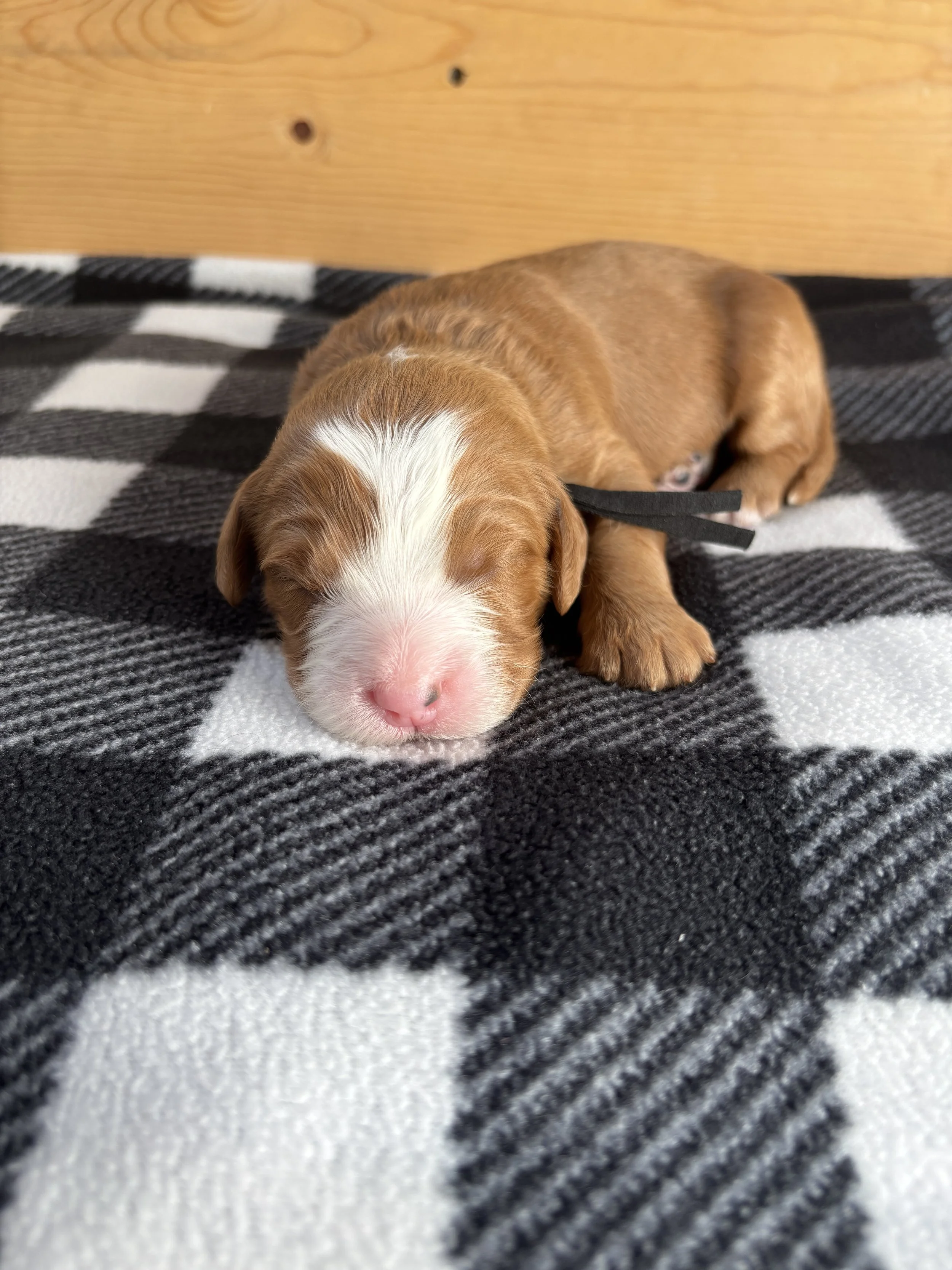 Rooster: is a 28-pound multigen bernedoodle. He has a playful, sweet personality and is so smart and eager to please. He has a silky, non-shedding flat coat. He is cleared for all tested genetic disorders and is OFA tested and cleared.